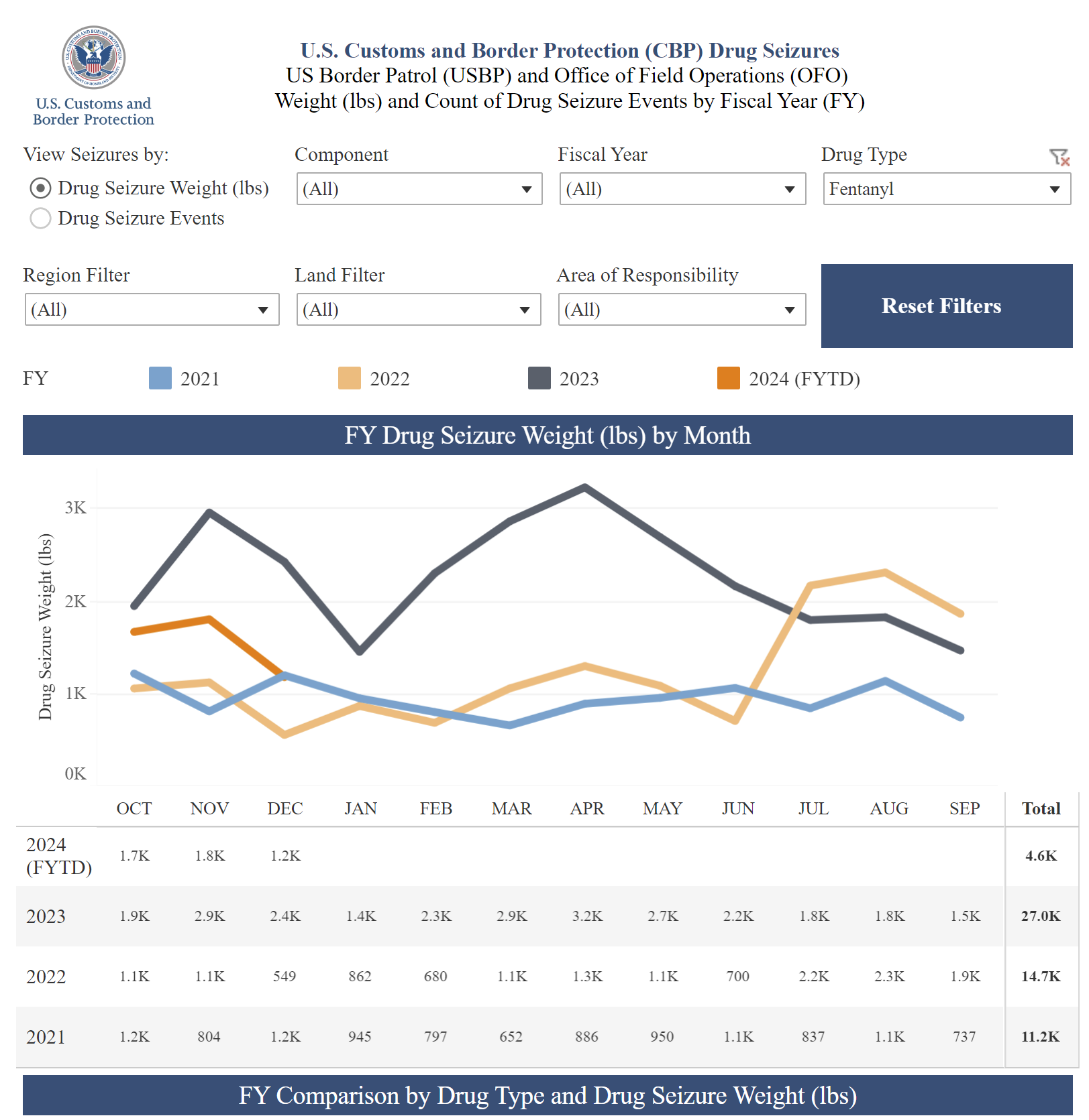 Alarming Increase in Fentanyl Seizures at the U.S. Border