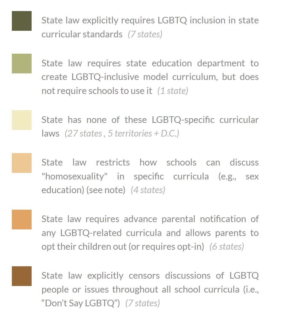 This accompanying graph provides an overview of each state’s stance on child protection and highlights how few states actually require parental notification regarding these harmful topics.